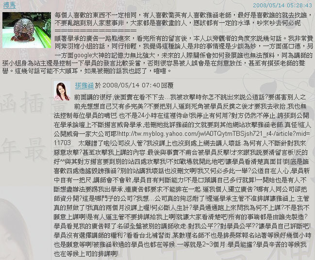 而這位某女在補習班論壇、在自己的官方部落格,明示+暗指這位學員是我,
