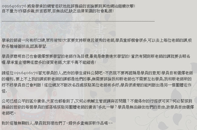 0916***在黑秀網做了公開澄清,證明自己真的是學員〔只是太失望後來跑去報別家而已〕