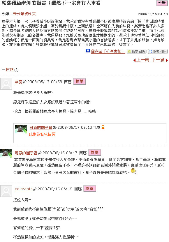 也許就是自己搞錯人、怨錯人,開始進行一連串的辱罵〔以後再公開...〕