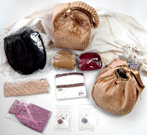 ‧深藍色和有蝴蝶結的金色包包是同一款,只是沒拆開而已。
