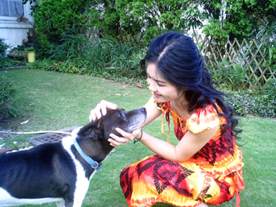 拍照時,熱情瘋狗奇奇一直在旁邊湊熱鬧,只好安撫牠一下